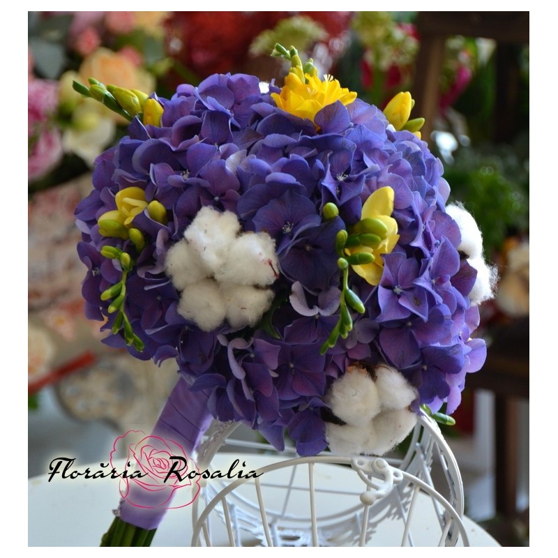 Buchet Cu Hortensie Mov Si Bumbac