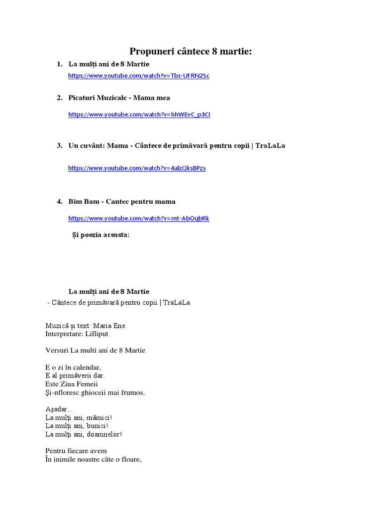 Cantece Copii 8 Martie